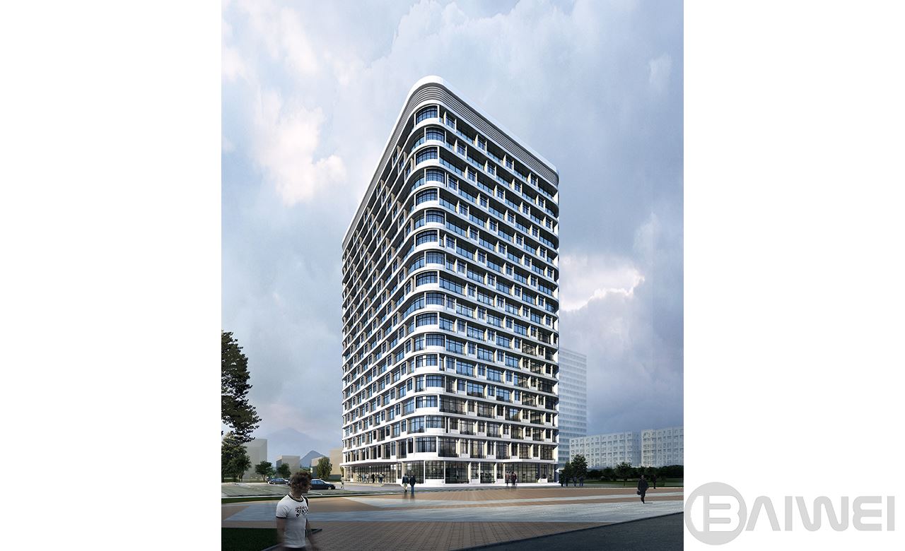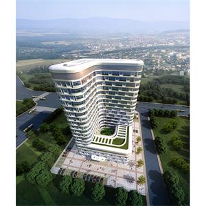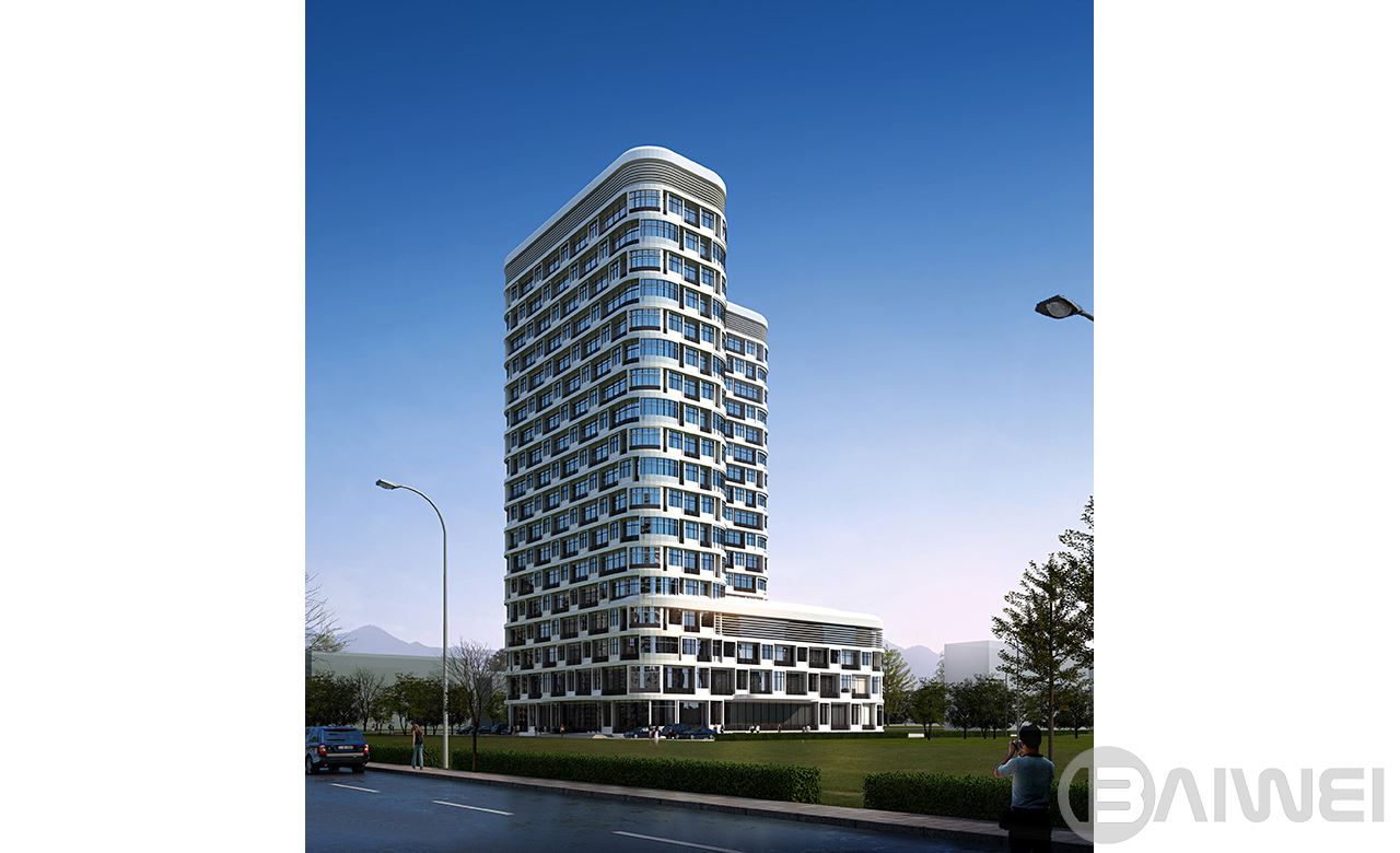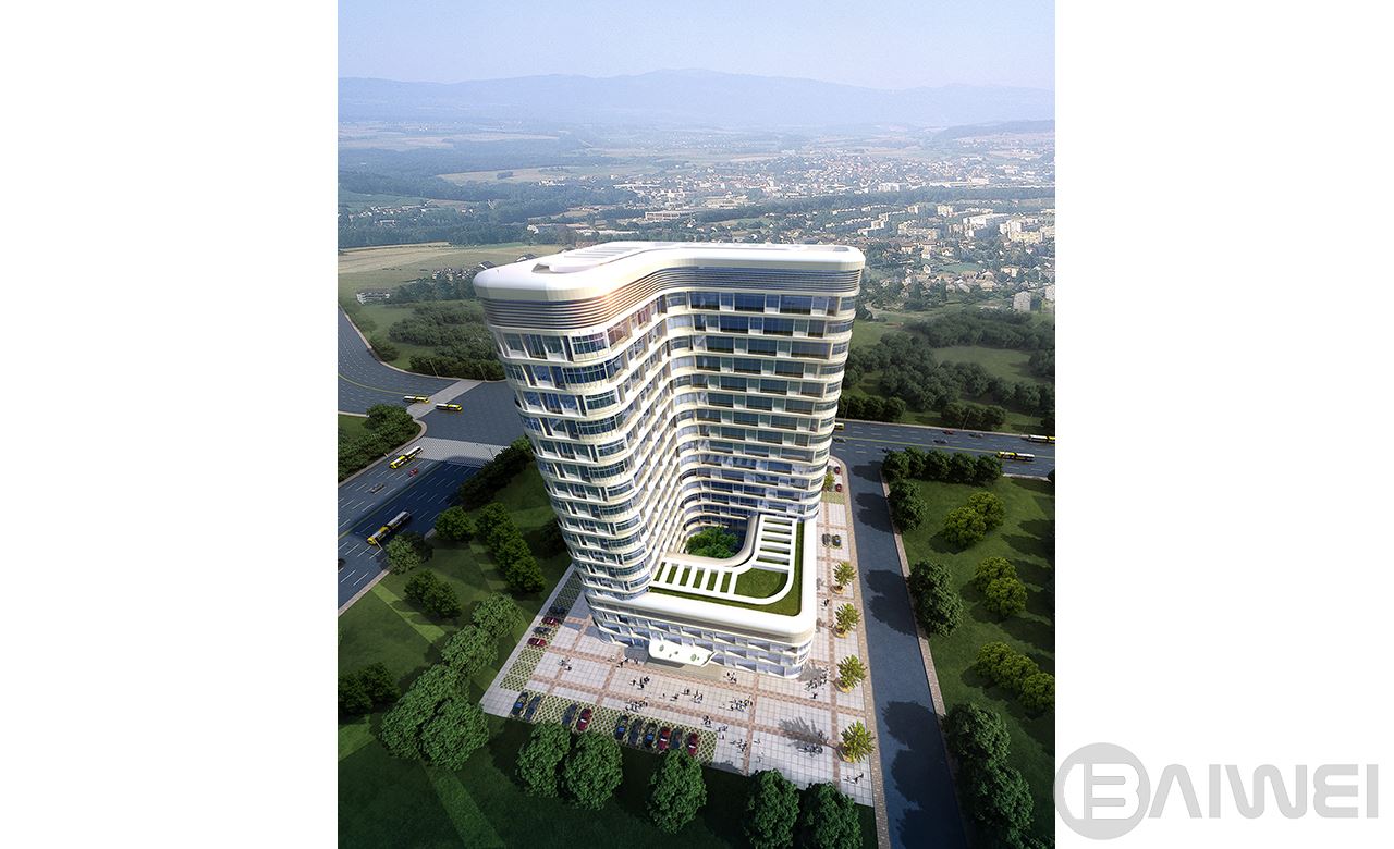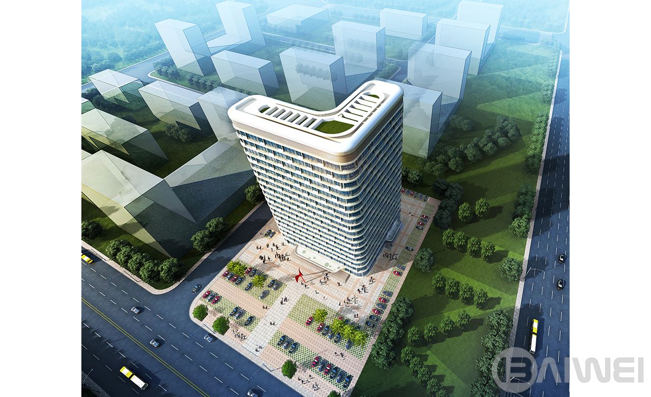 建筑以辦公為主,局部商業(yè)。裙樓以矩形為主,中間巧妙配以中庭,在避免了視線干擾的同時(shí),為公共活動(dòng)區(qū)提供了良好的視覺焦點(diǎn)和室外活動(dòng)場(chǎng)所,使建筑內(nèi)部空間品質(zhì)大加改善。并取得了中央綠地景觀與城市綠化帶景觀的協(xié)調(diào),形成一體化的具有生長性的景觀脈絡(luò)。主樓以“L”布局分布,以提升建筑物的活躍度,體現(xiàn)總部大廈辦公建筑的鮮明個(gè)性,使建筑物的整體形象更加簡(jiǎn)潔明快,賦予建筑強(qiáng)烈的時(shí)代特征。立面采用充滿現(xiàn)代意味的韻律感來加強(qiáng)建筑節(jié)奏性,細(xì)節(jié)上極具特征,整體上又連接成片,渾然一體,簡(jiǎn)約純凈。同時(shí)立面設(shè)計(jì)上注重實(shí)體與虛透空間的比例關(guān)系,活潑的灰白色石材墻面呈橫向延伸,加之于豎向窗戶的肌理,由橫向線條隱含表達(dá)著縱向線條的變化,賦予了立面以活潑元素,注重虛實(shí)相比與體塊交差、變化,使建筑體量變化多姿相得益彰。