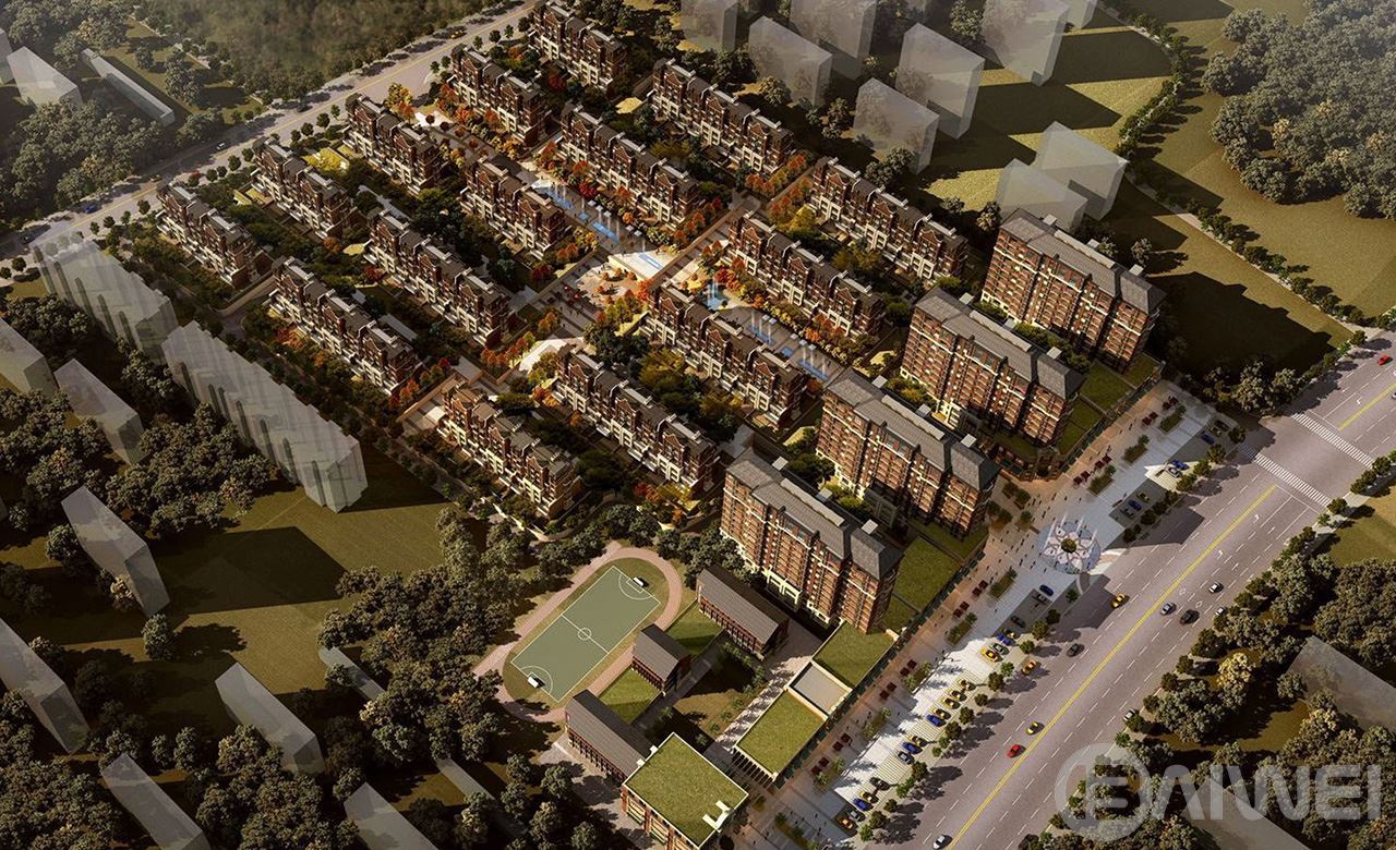 本項(xiàng)目住宅主要為4棟13層小高層公寓,以及15 棟5?6層多層洋房。立面整體采用美式褐石風(fēng)格,立面以褐色磚面及石材為主,真石漆勾勒門庭和建筑線條,透過深淺明暗,表現(xiàn)其豐富的歷史痕跡與渾厚的文化底蘊(yùn)。整體追求高貴、典雅、端莊,以其優(yōu)雅、唯美的姿態(tài),平和而富有內(nèi)涵的氣韻,描繪出居室主人高雅的身份。