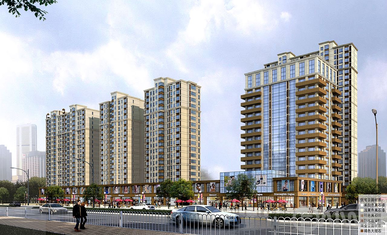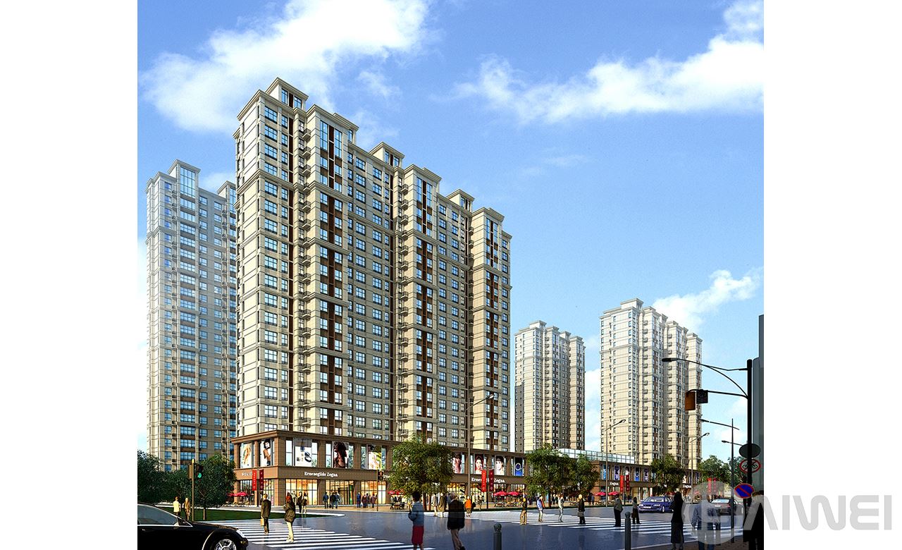 項(xiàng)目位于龍口市,包括15棟18~27層高層住宅、配套商業(yè)服務(wù)網(wǎng)點(diǎn)、會(huì)所及地下車庫。建筑單體立面設(shè)計(jì)注重塑造群體形態(tài)及可識(shí)別性,明朗、簡(jiǎn)潔的橫向線條和高聳挺拔的輪廓結(jié)構(gòu),強(qiáng)調(diào)建筑的高聳感。底部局部干掛石材與真石漆相結(jié)合。