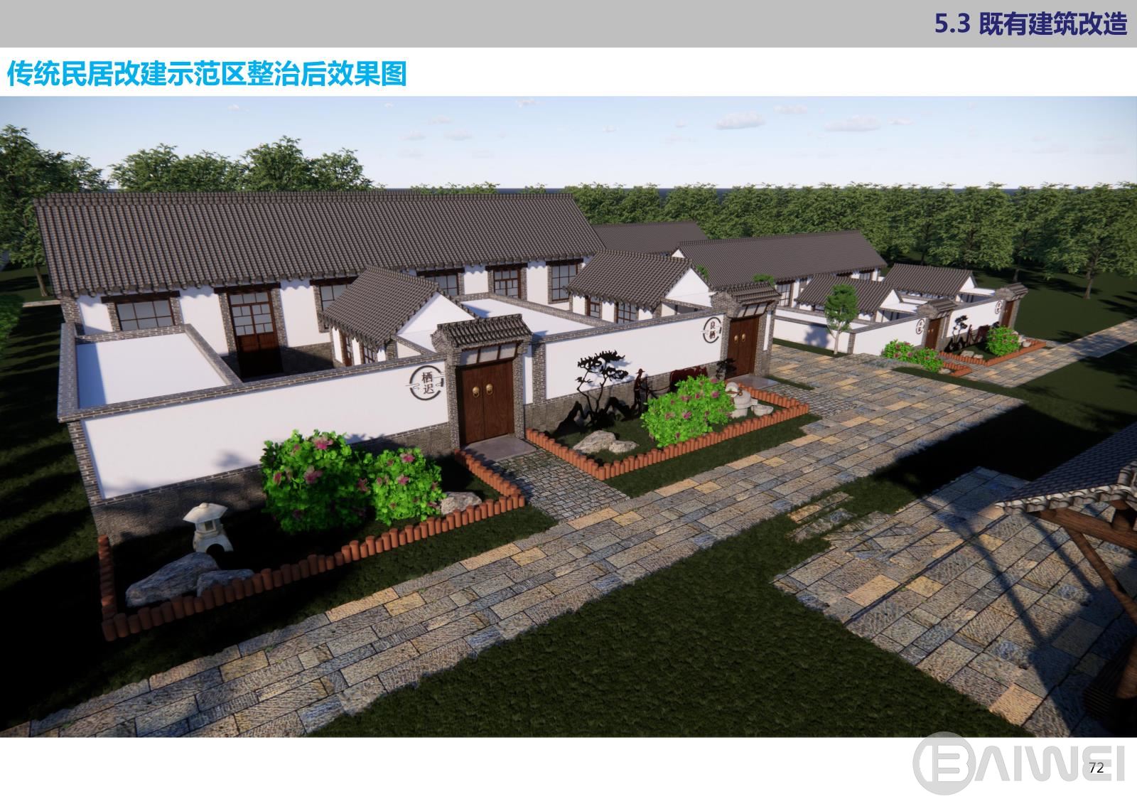規(guī)劃針對(duì)原有建筑進(jìn)行修繕。其中,社會(huì)主義新農(nóng)村住宅,保留原有建筑體量,保留原有形態(tài),保留現(xiàn)有建筑元素與形式基礎(chǔ)上進(jìn)行修補(bǔ),僅針對(duì)建筑外立面進(jìn)行修繕,提升改善人居環(huán)境;傳統(tǒng)民居,按照修舊如舊原則,還原傳統(tǒng)民居的建筑特色,對(duì)閑置民居進(jìn)行功能置換,將其改建為鄉(xiāng)村民宿;工業(yè)廠房,對(duì)廢舊工業(yè)廠房進(jìn)行建筑更新改造,將其改建為超市、騎行驛站,為鄉(xiāng)村建筑帶來(lái)現(xiàn)代氣息。
