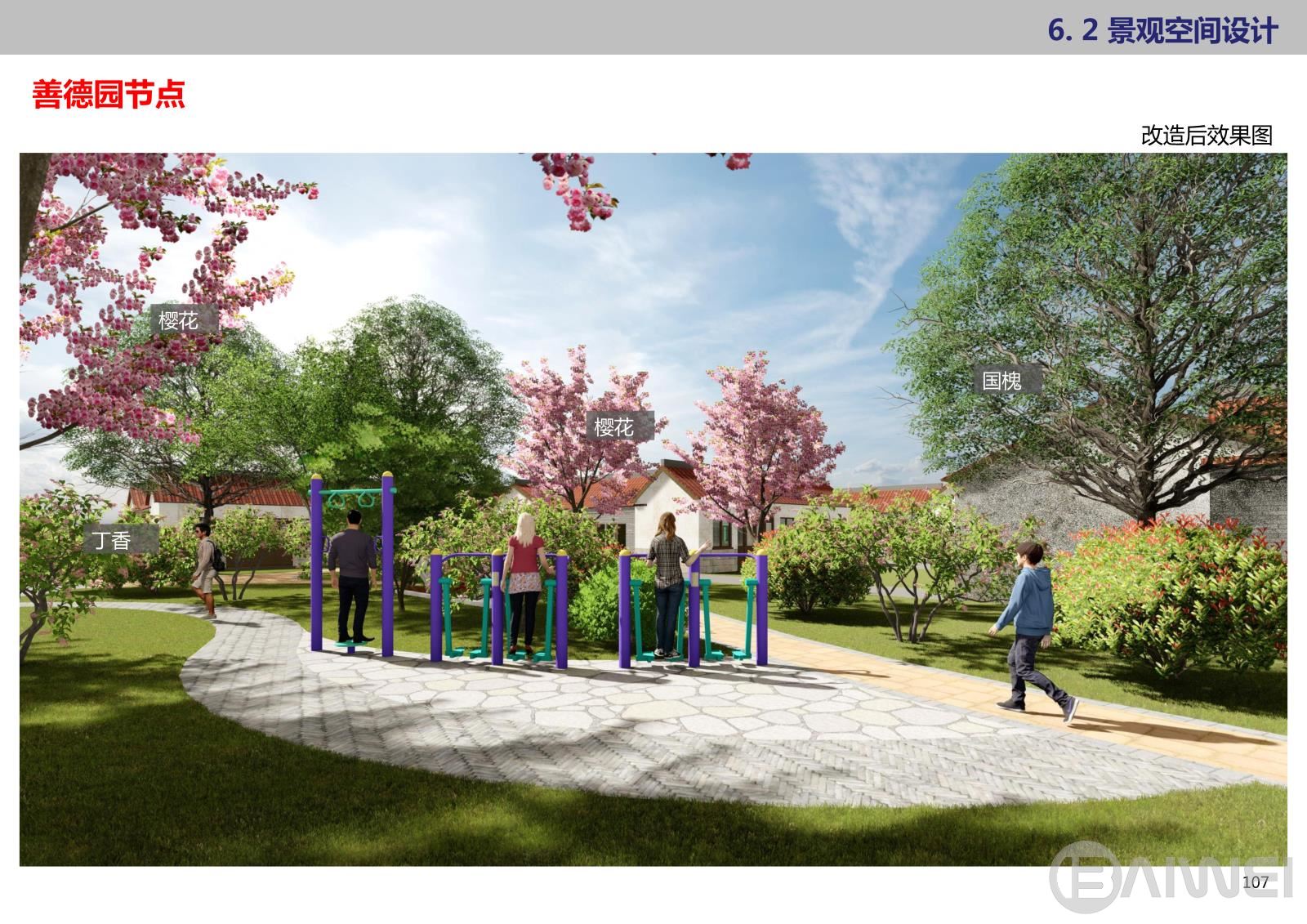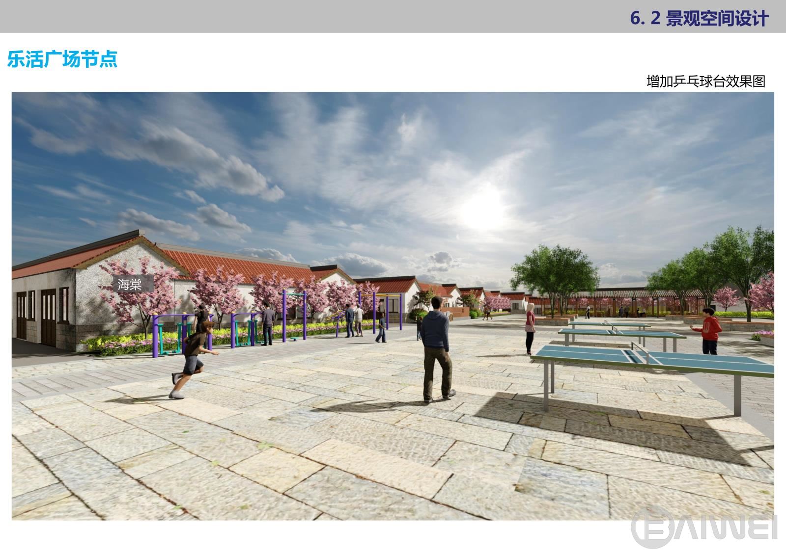 新建鄉(xiāng)村集市、特色餐飲區(qū)、文化大院,延續(xù)魯派民居及周邊公共建筑風(fēng)貌,采用中式建筑手法,在延續(xù)傳承同時(shí),提升羅山路兩側(cè)建筑形象。